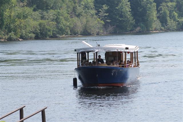 Earlier this summer we booked a tour on the Quinnetukut II, which is supposed to be a replica of the boat from the old movie “African Queen.” Our captain took us on a tour down the Connecticut River to Turners Falls, with a guide telling us facts about the river, the geology, the wildlife, the power plant and local history. The boat was comfortable and spacious. We saw great blue herons and swans, though the bald eagles made themselves scarce.